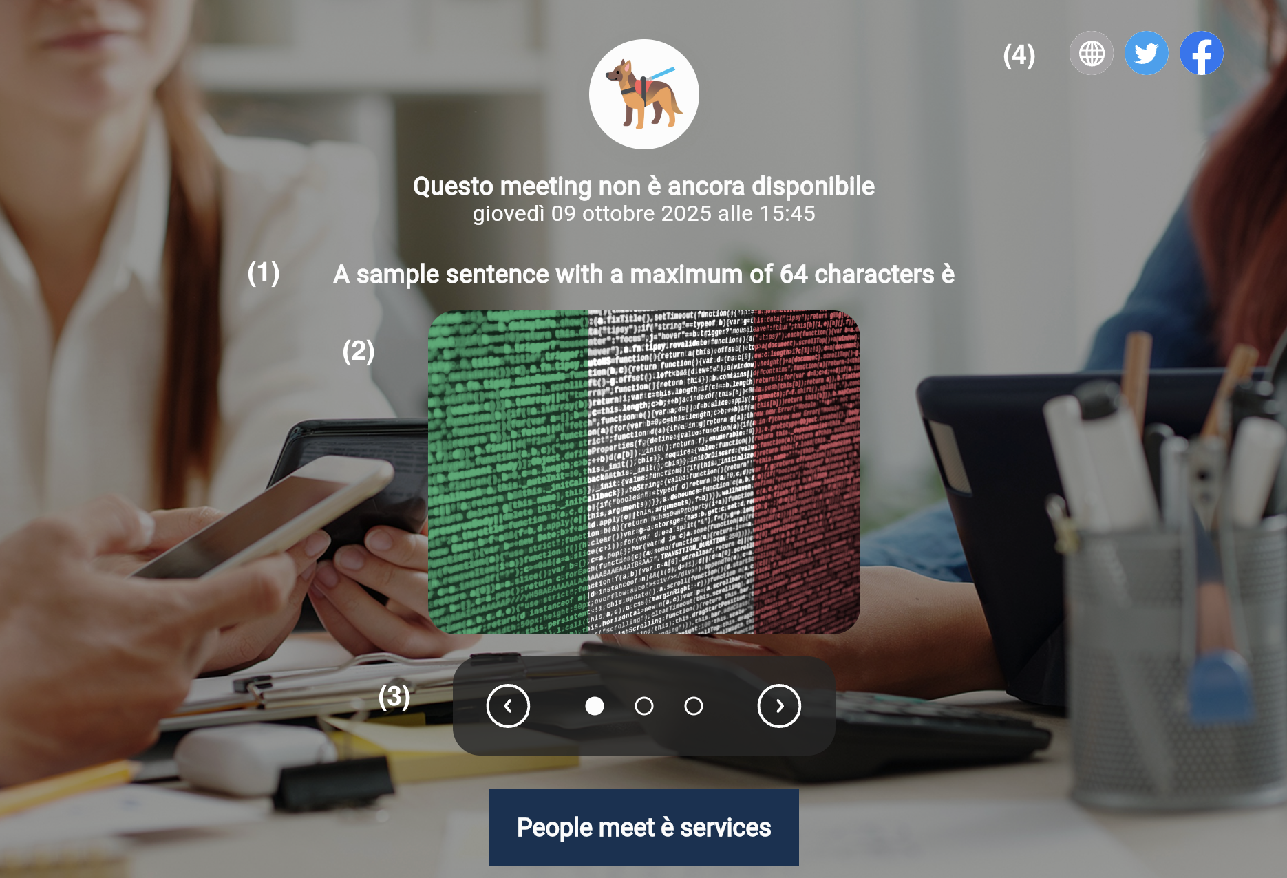 Se offri uno o più servizi con erogazione da remoto, hai la possibilità di effettuare delle comunicazioni o attività promozionali ai tuoi utenti ancor prima che questi si autentichino nella Virtual Room, all'interno della Log In Page
